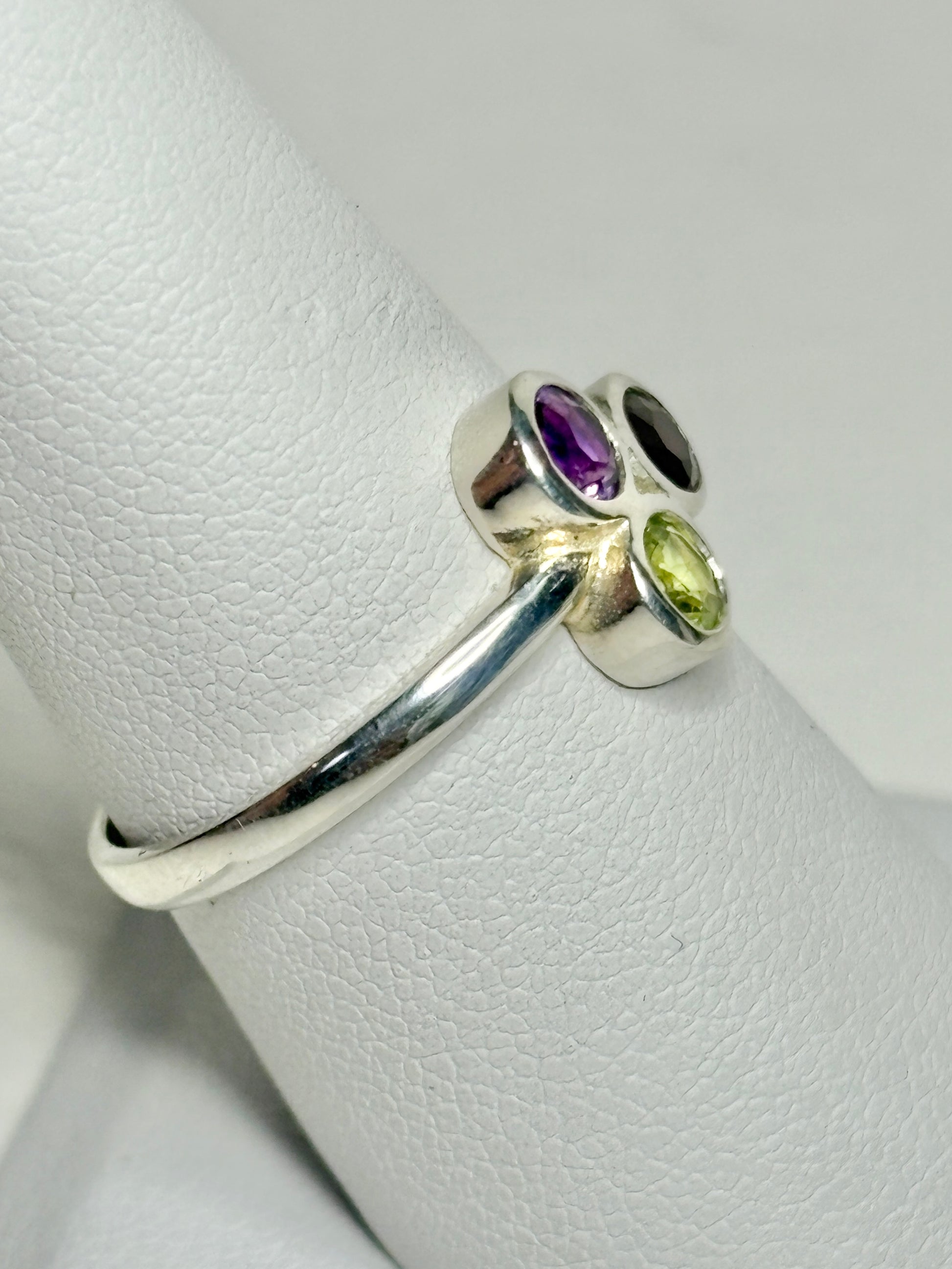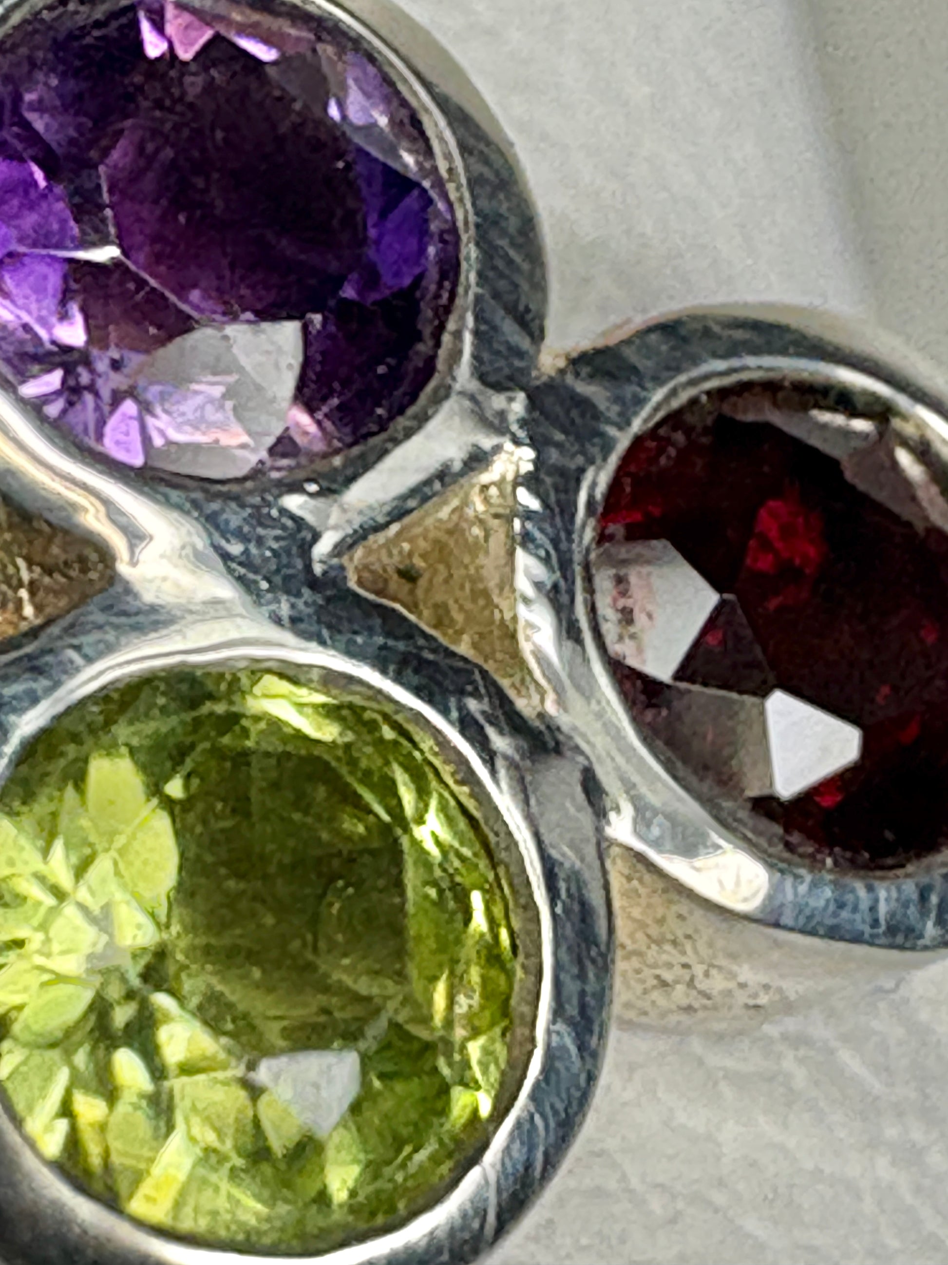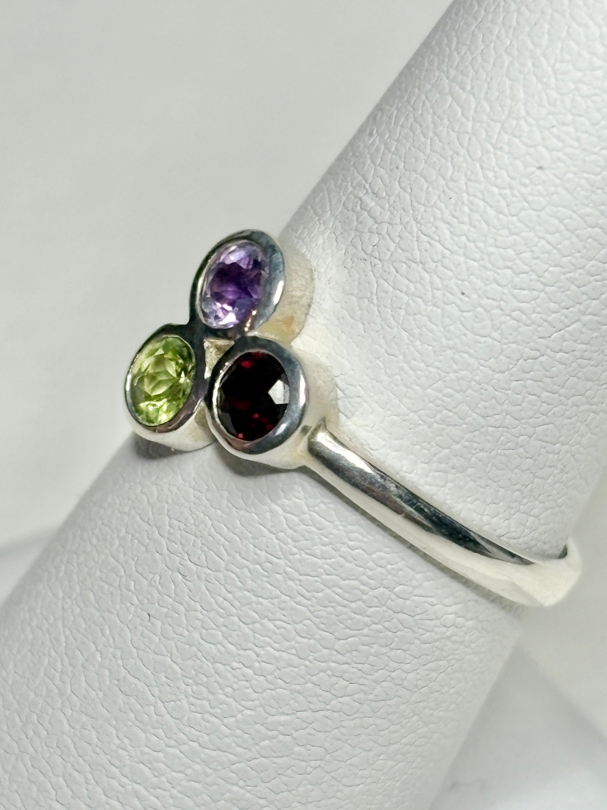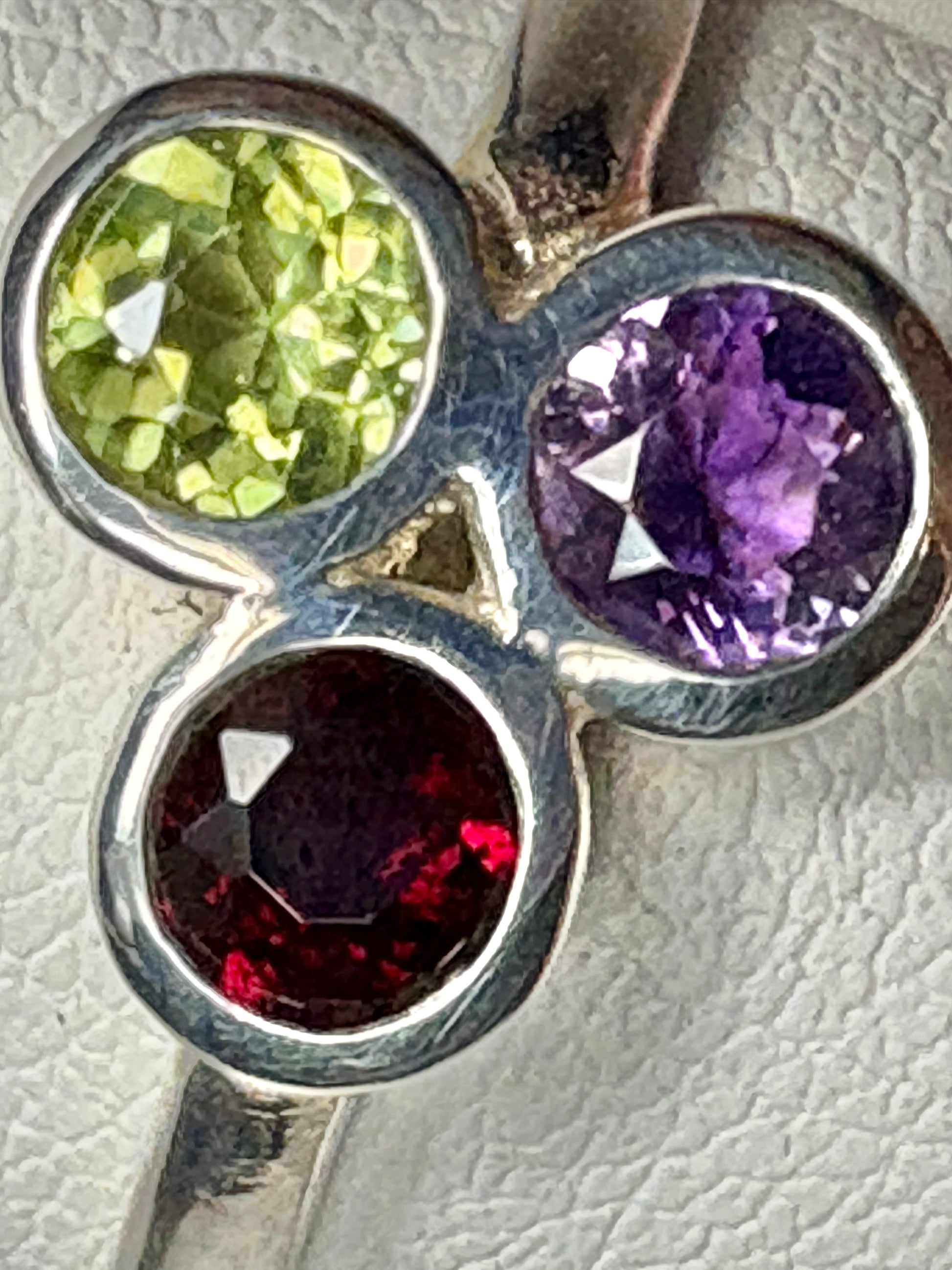 Arizona Gem Trio Amethyst Peridot & Garnet Bezel Set in Sterling Silver size 8